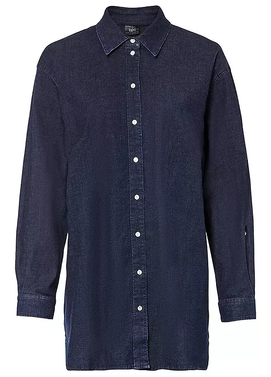 Oversize blouse in stretchy denim material. Length approx. 80 cm.