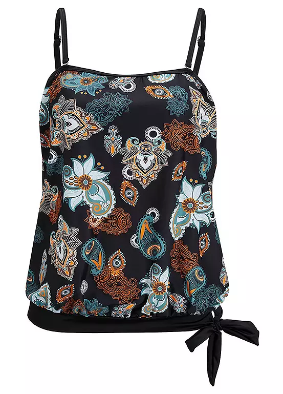 Fashionable paisley print tankini top, with adjustable straps. Washable.