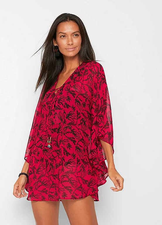 Light and floaty transparent beach kaftan in a short style. Length approx. 80 cm.