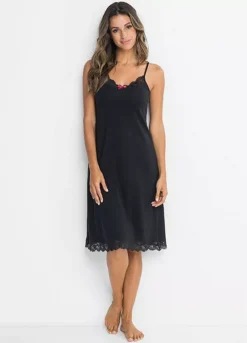 A cotton jersey nightie with adjustable cami straps and lace trim at the hem. Machine washable. 95% Cotton, 5% Elastane, Lace: 90% Polyamide, 10% Elastane.