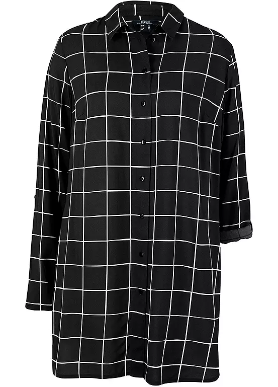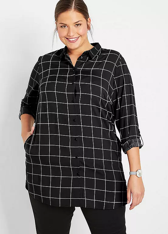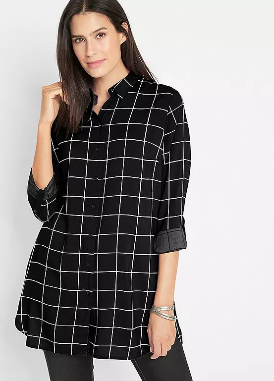 Check print blouse with long sleeves and button fastening. Machine washable. 100% Viscose (Verified). Length approx. 80 cm.