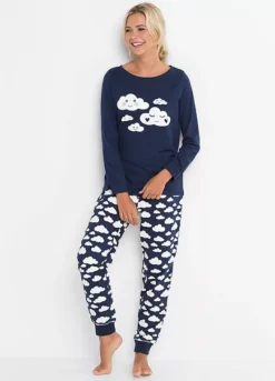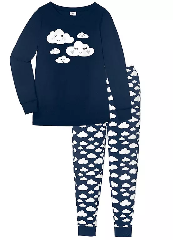 A long sleeve PJ top in soft organic cotton with a cloud at the chest. Matching bottoms with cuffed hems. Machine washable. 95% Cotton (Organic), 5% Viscose.