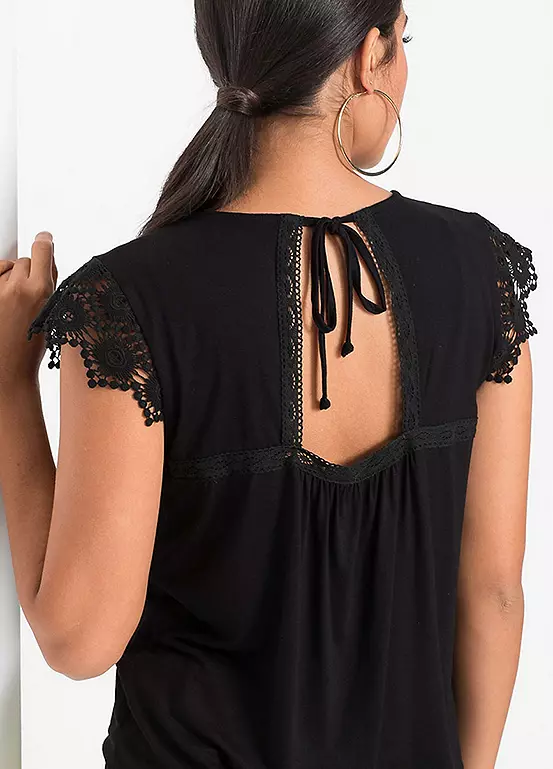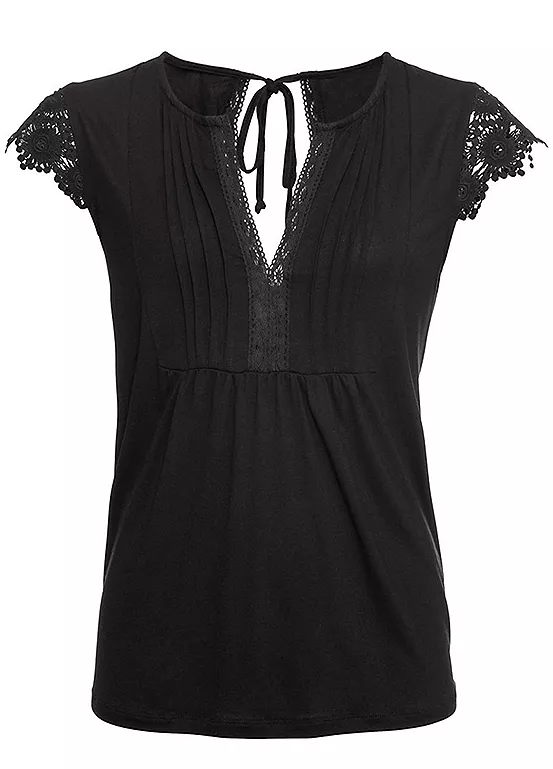 Fibre ContentOuter material: 95% Viscose, 5% Elastane, Lace: 100% Cotton, Sleeves: 80% Cotton, 20% Polyester