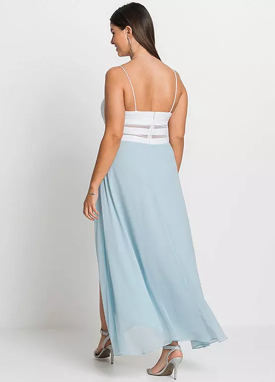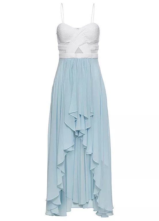 Choose between two beautiful colour schemes for your bridesmaids with this lovely sweetheart bodice dress. The cups are padded for more support and there’s a zip fastening at the back. Your bridesmaids will love the flattering dipped hem too! Machine washable. Shell: 100% Polyester, Lining: 100% Polyester. Length approx. 140 cm.