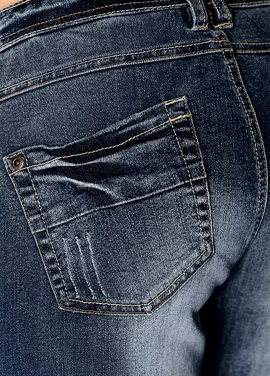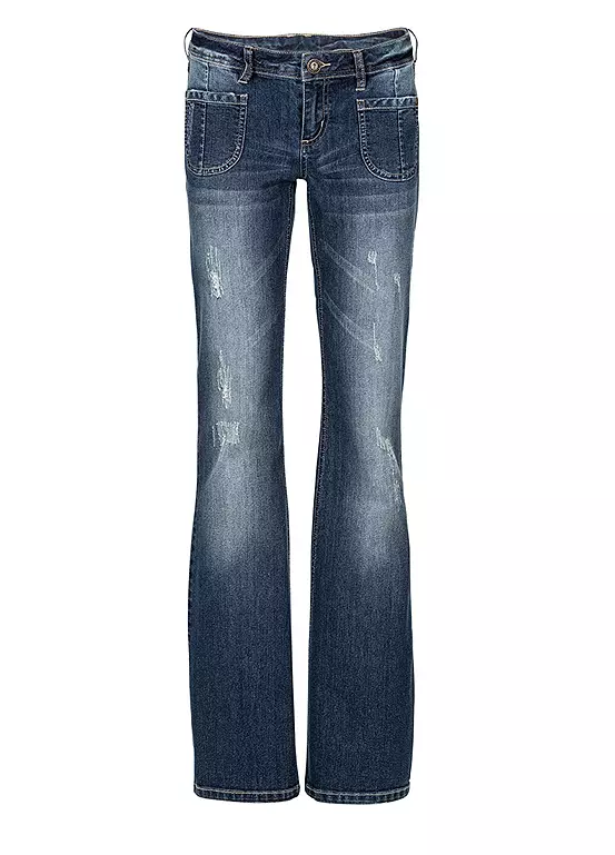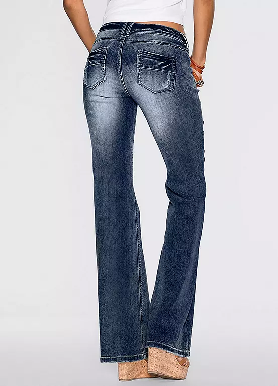 A classic pair of flared jeans with faded patches. Machine washable. 82% Cotton, 17% Polyester, 1% Elastane. Inside leg approx. 84 cm.