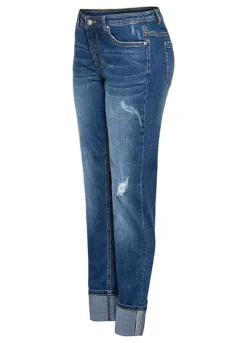 A stretchy pair of jeans with a retro flared cut. 98% Cotton, 2% Elastane. Inside leg approx. 83 cm.