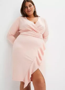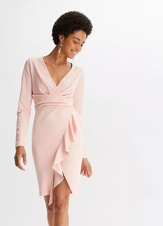 Elegant jersey wrap dress with flouncing down the skirt. Machine wash. Length approx. 98 cm.