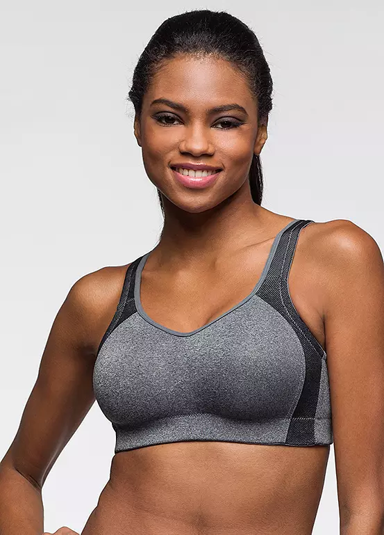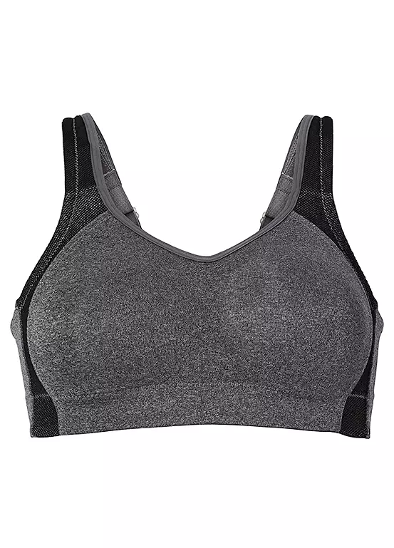 Non-wired. A high impact sports bra with bra fastening at the back and adjustable, padded straps. The Coolplus fabric wicks moisture away from the skin keeping you cool and dry. Machine washable.