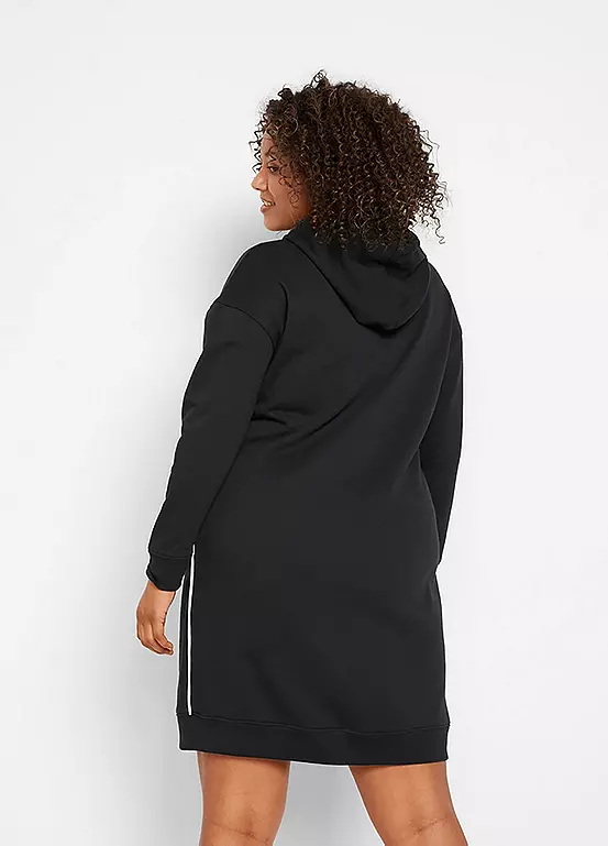 Hooded sweater dress with side piping. Washable. 96 cm.