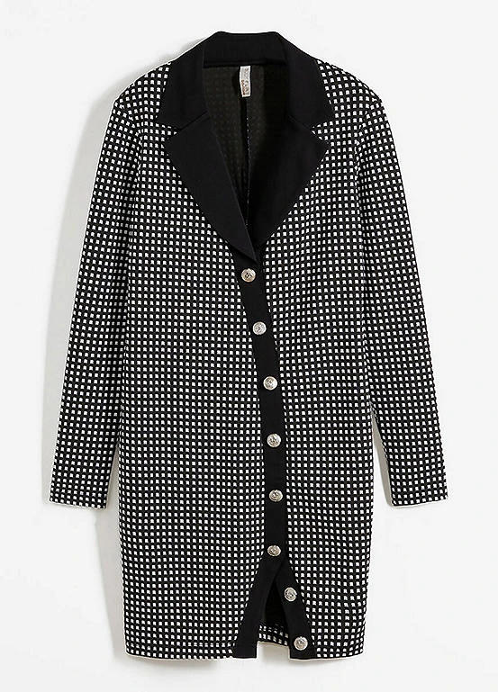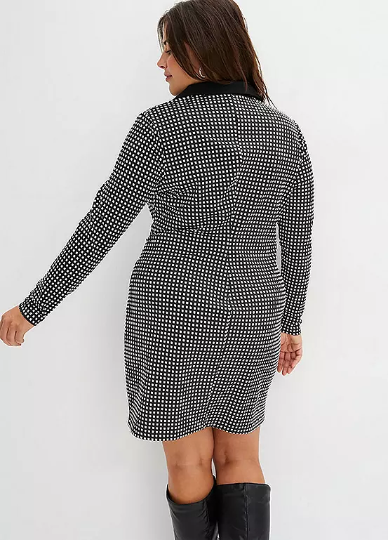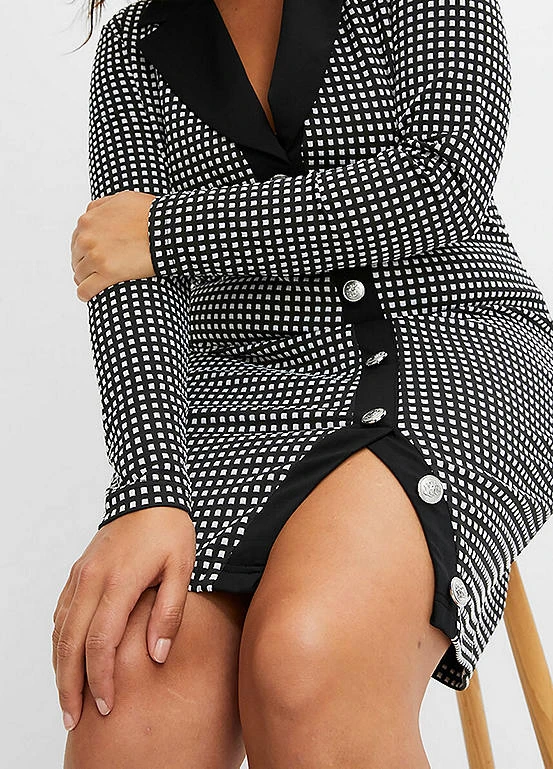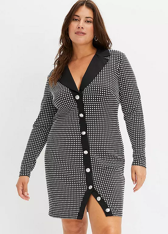 Fitted dress with small checks and metal buttons down the front. Machine wash. Length approx. 90 cm.