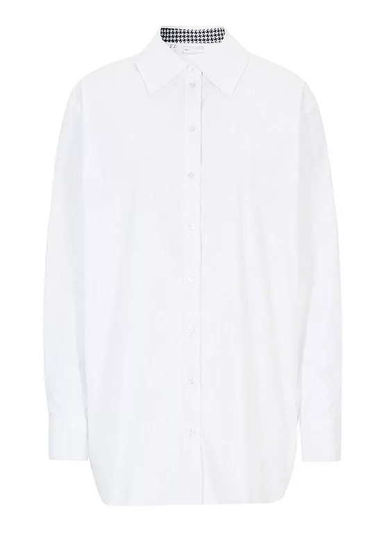 Oversize blouse with houndstooth trim. Length approx. 88 cm.