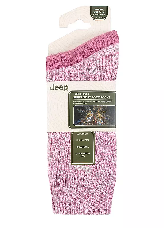Ladies 2 Pr jeep performance polyester boot socks. Cerise/Cream Performance poly socks. Terry cushion for added comfort. Soft touch yarn. Performance poly socks. Terry cushion for added comfort. Soft touch yarn. 1 Plain & 1 Marl Sock. Size approx. 4 to 8.