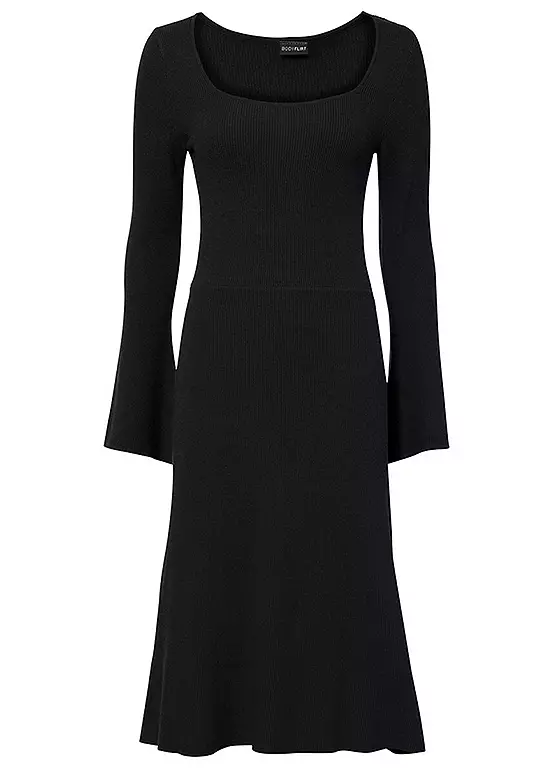 Midi length dress in a stretchy knit fabric with a square neckline. Length approx. 108 cm.