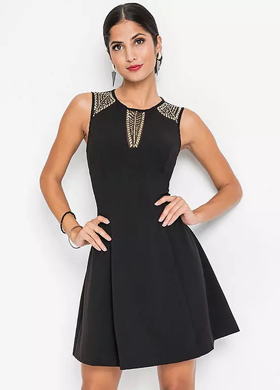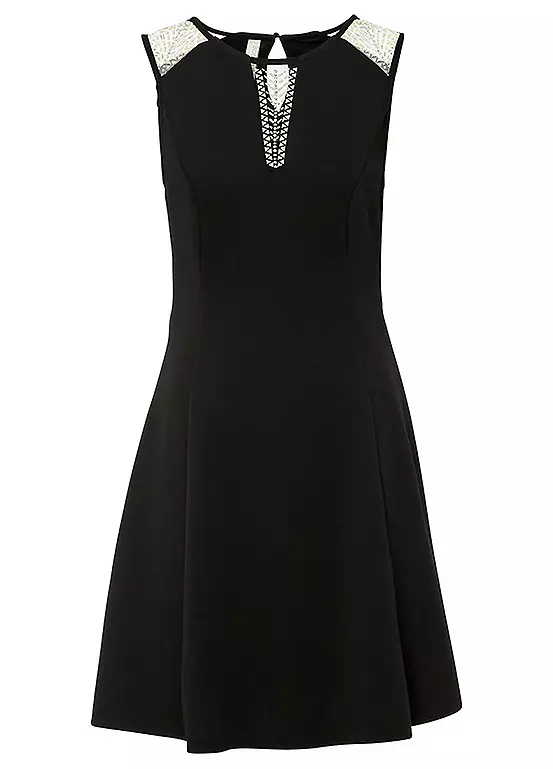 Sleeveless skater dress with lace inserts. Machine wash. Length approx. 90 cm.