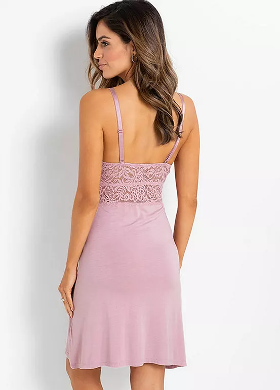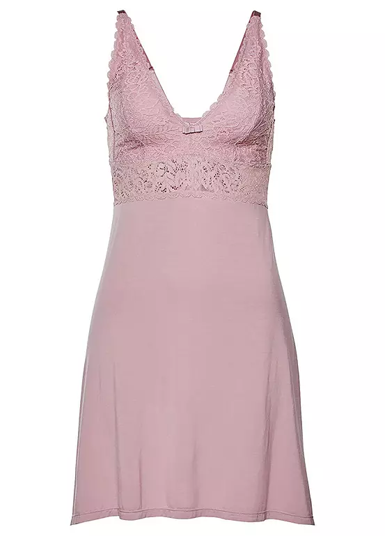 A v-neck slip with adjustable straps and an A-line shape. Machine washable. Shell: 95% Viscose, 5% Elastane, Lining: 95% Viscose, 5% Elastane, Lace: 88% Polyamide, 12% Elastane.