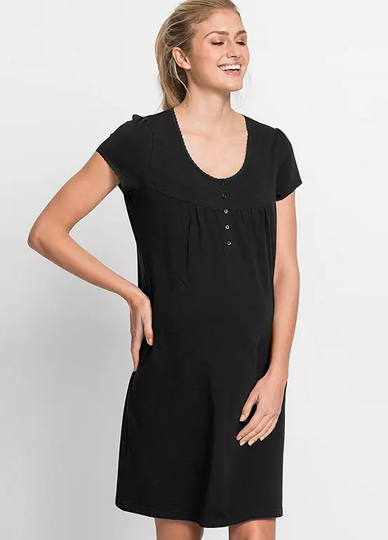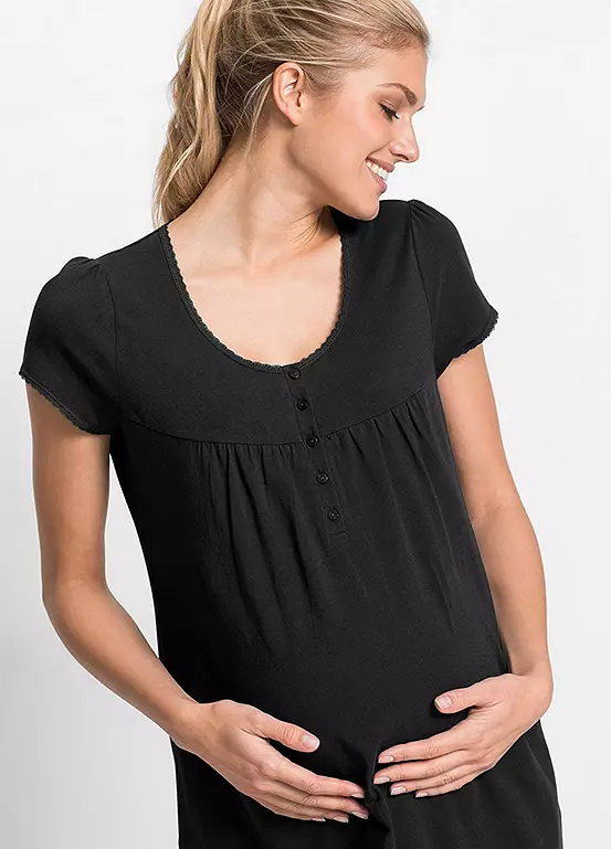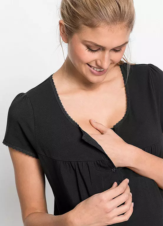 A soft stretch cotton nightie with lace trim at the neckline and short sleeves. Short button panel at the front. Machine washable. 95% Cotton, 5% Elastane, Grey Marl: 55% Cotton, 40% Polyester, 5% Elastane.