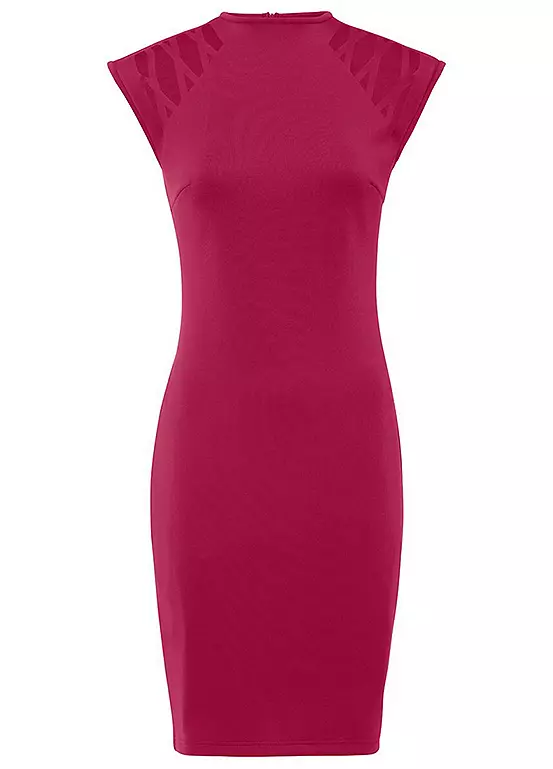Fitted dress with lattice strap shoulders. 95% Polyester, 5% Elastane. Length approx. 94 cm.