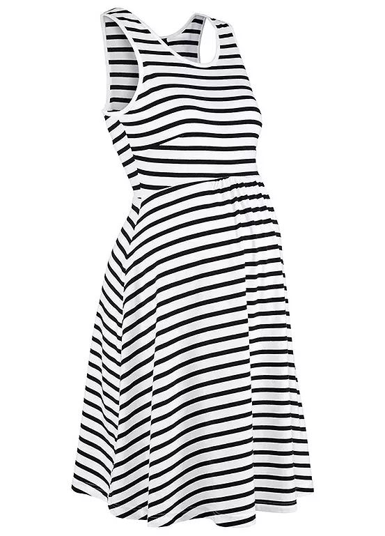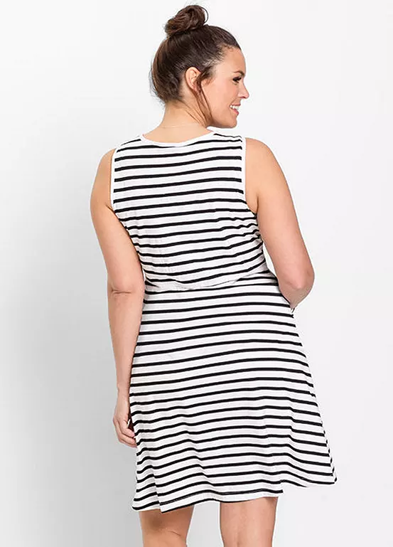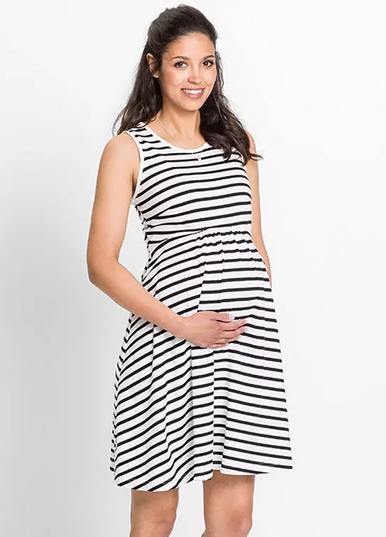 A sleeveless holiday dress with Breton stripes and a special cut designed to fall loosely around your changing shape. Machine washable. 95% Cotton, 5% Elastane. Length approx. 96 cm.