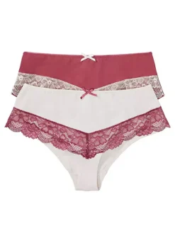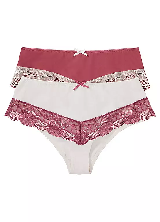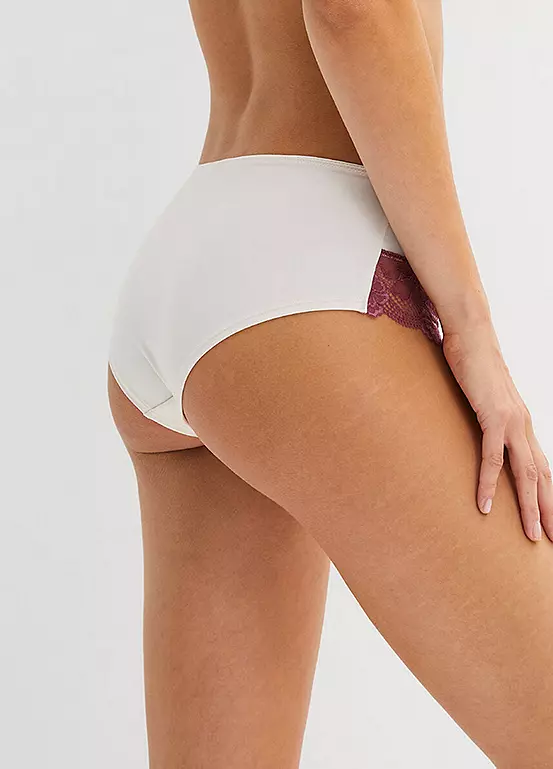 Two pairs of briefs with lace detailing. 1 x Mulberry and 1 x Sand. Machine washable.