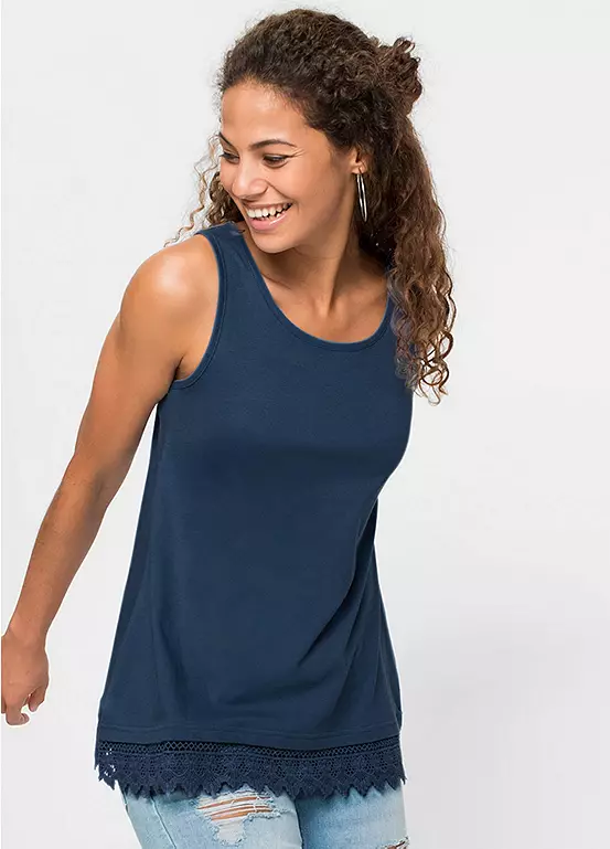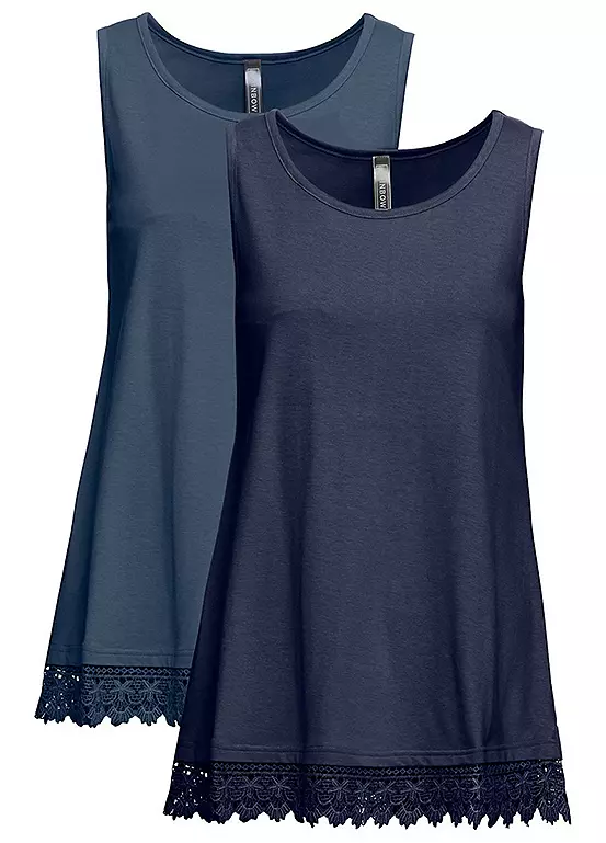 Two cotton jersey tops with lace trim at the hem.