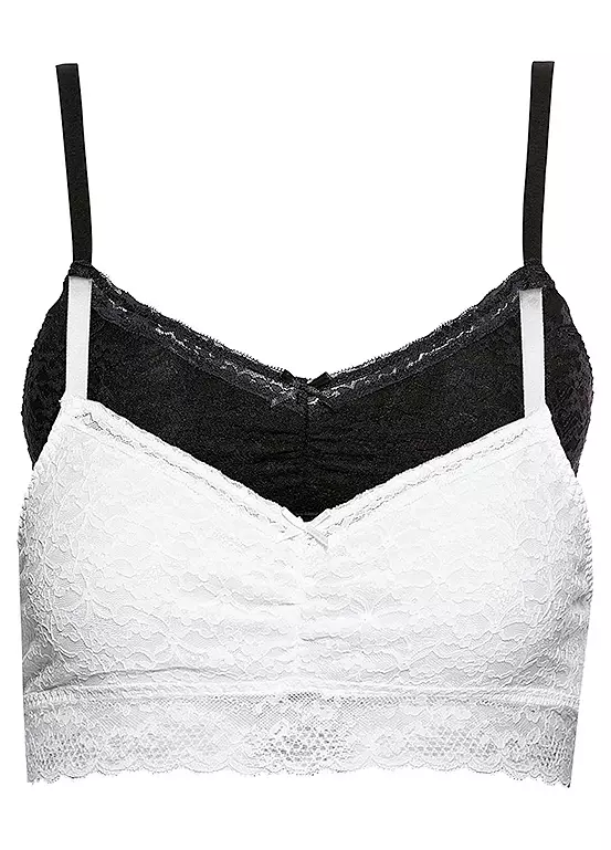 Non-wired. Two stretchy lace bras with gathering and a bow at the bridge. One in black and one in another colour of your choice. Machine washable. Shell: 88% Polyamide, 12% Elastane, Lining: 95% Cotton, 5% Elastane.