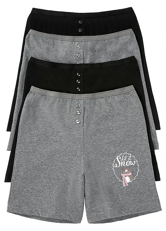 Four girlie boxers with a fake fly and a print. Machine washable.