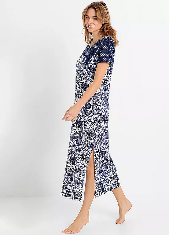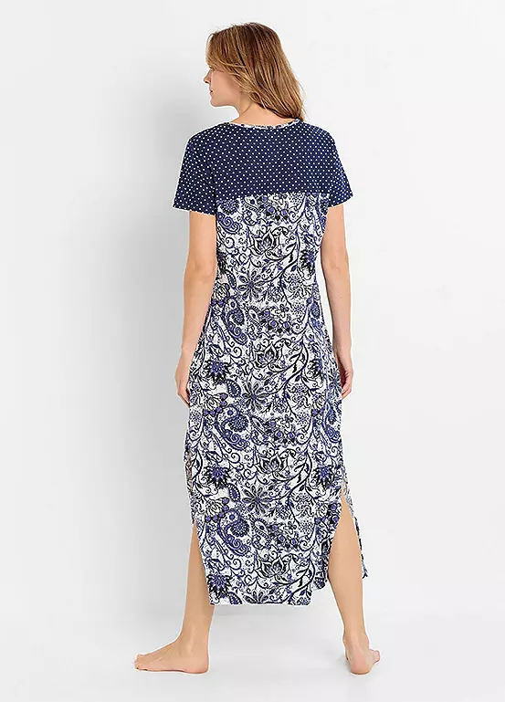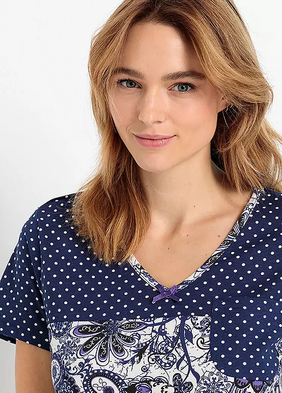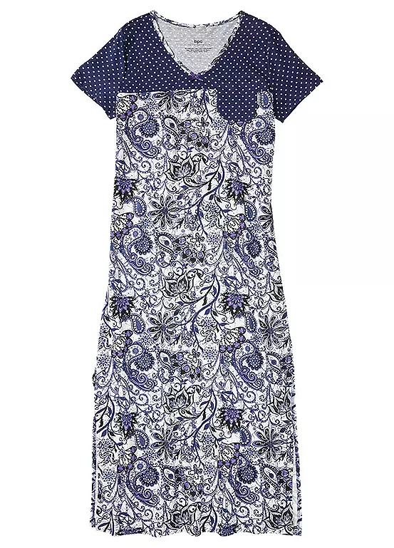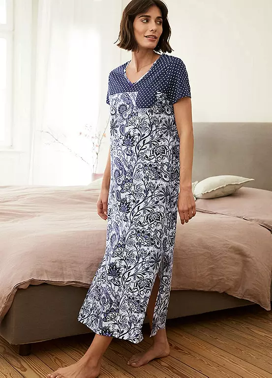 Cotton t-shirt nightie with a contrast yoke. Machine wash at 40°C.