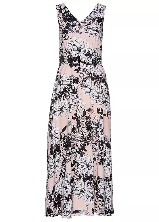 A floral print maxi dress with a beautiful pleated skirt. Machine washable. 100% Polyester, Lining: 100% Polyester. Length approx. 136 cm.