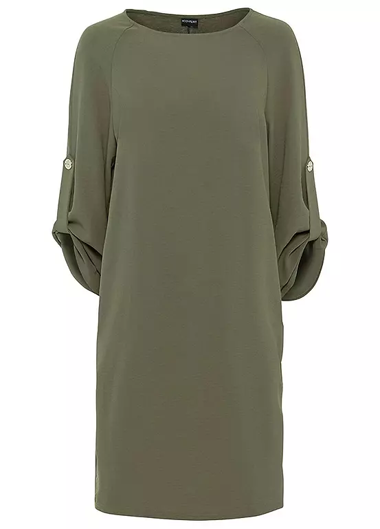 Pocket dress with a crop sleeve. Length approx. 98 cm.