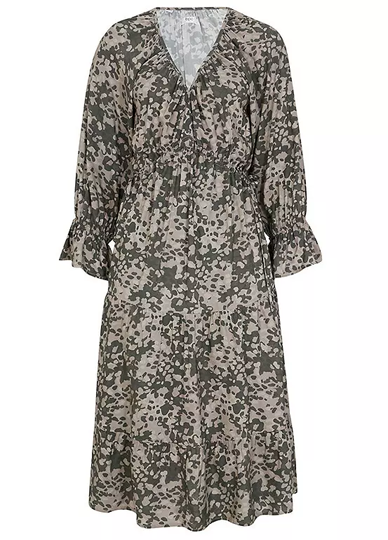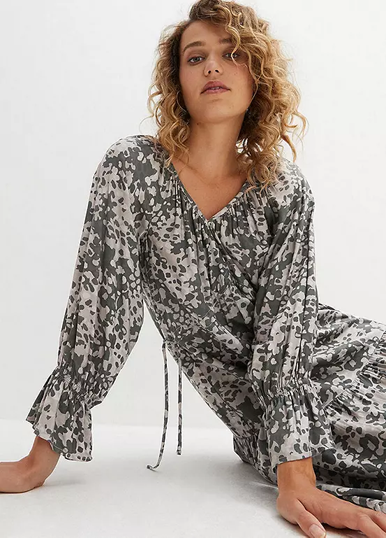 Chiffon shell dress with a V-neck bodice and a flounced hem. Machine washable. 100% Sustainable Viscose. Length approx. 108 cm.