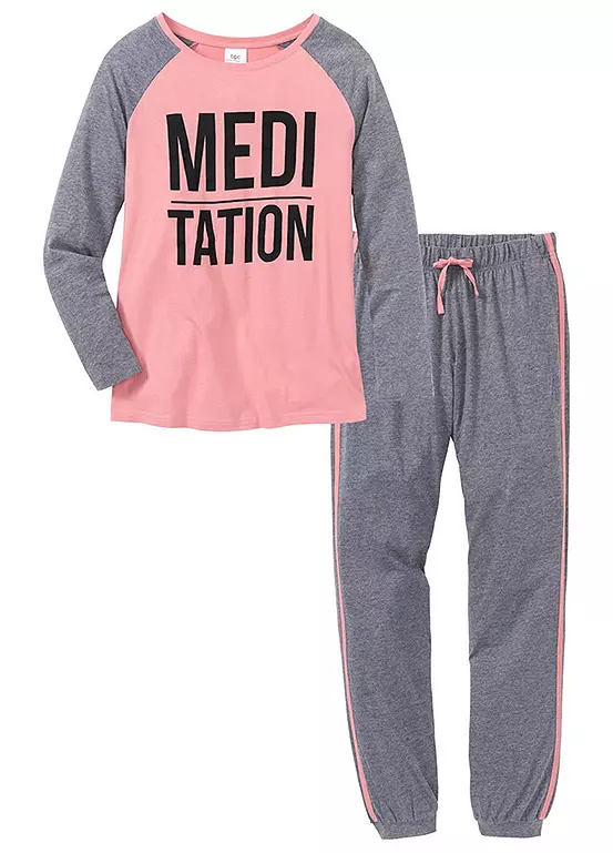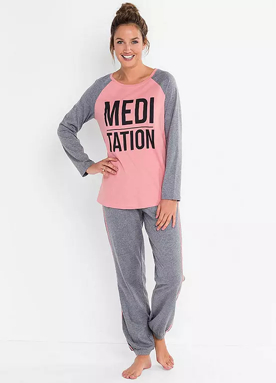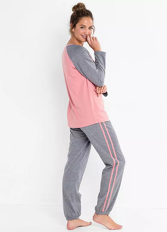 These jersey pyjamas come with raglan sleeves and long bottoms. Machine washable. 100% Cotton, Sleeves: 60% Cotton, 40% Polyester, Bottoms: 60% Cotton, 40% Polyester.