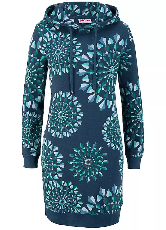 Comfortable sweatshirt dress featuring long sleeves and an all-over print. Machine washable. 100% Cotton. Length approx. 92 cm.