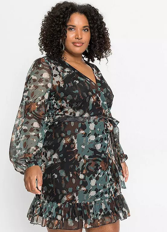 Wrap dress with a flounced hem. Length approx. 90 cm.