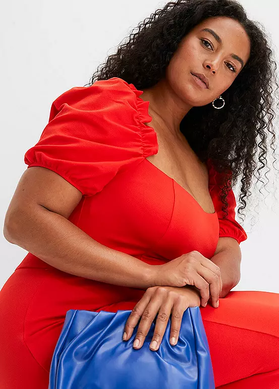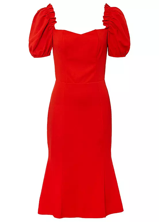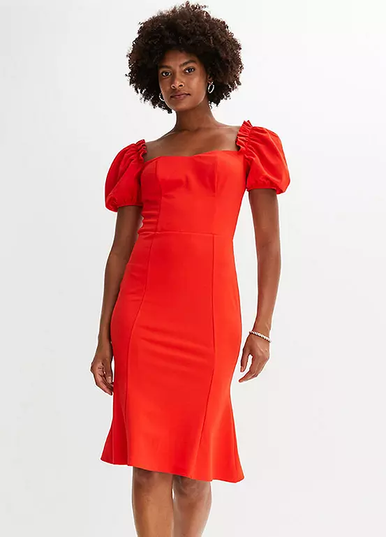 Fitted party dress with puff sleeves and a flounced hem. Length approx. 104 cm.