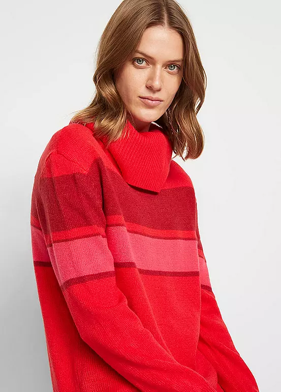 A comfy knitted dress with stripes. Machine washable. Length approx. 106 cm.