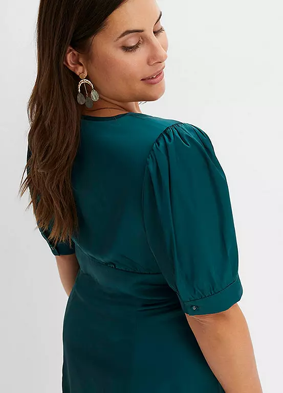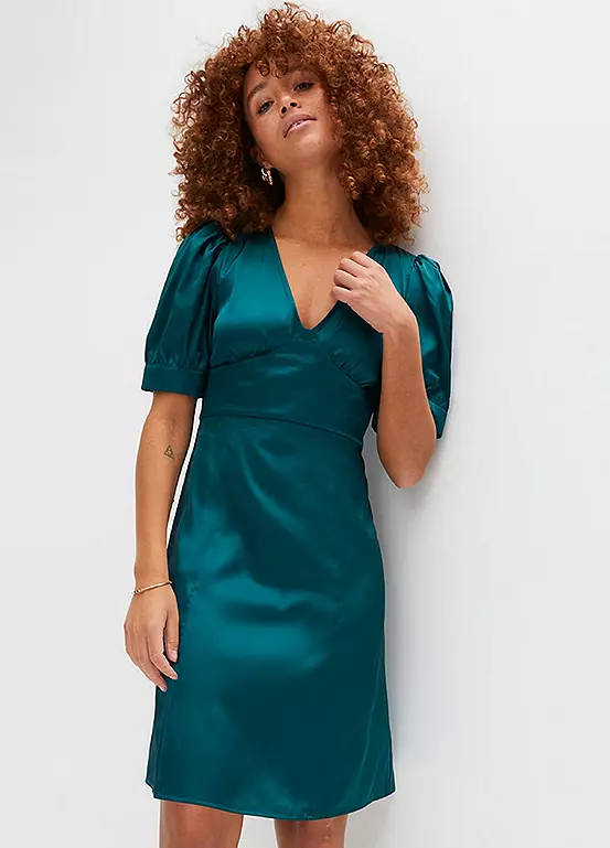 Elegant satin dress with a plunging V-neck. Length approx. 94 cm.