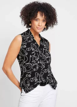 A smooth summer blouse with button fastening and side vents. Machine washable. 100% Viscose. Length from approx. 65 to 74 cm.