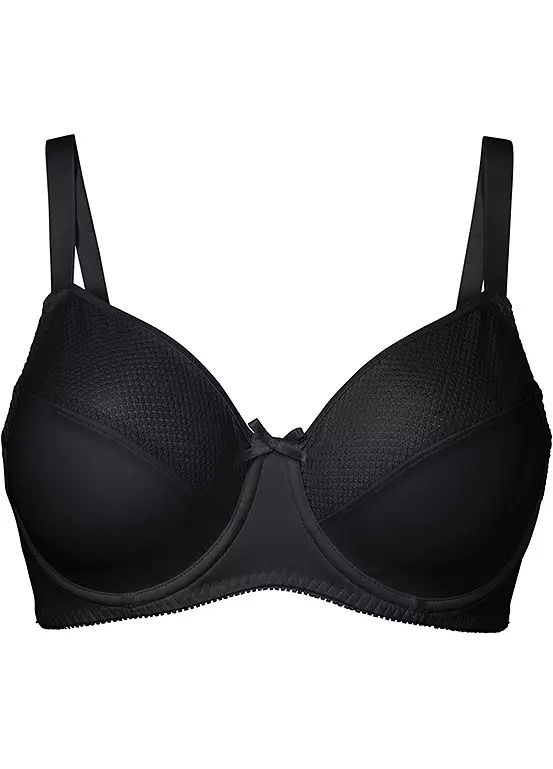 Underwired. A smooth single colour bra in a special cut to visually reduce bust size by up to one cup. Hand wash. 80% Polyamide, 20% Elastane.