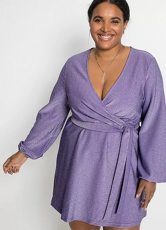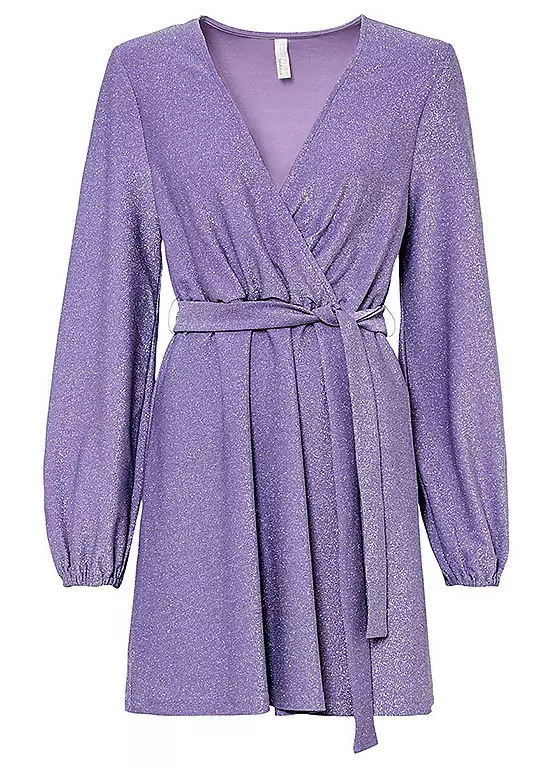 Sparkly party dress with a wrap bodice. Machine wash. Length approx. 86 cm.