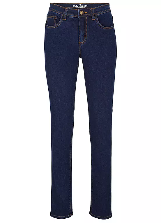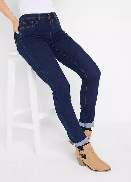 A pair of straight cut jeans in warm material for winter. Available in 2 lengths. Machine washable. 71% Cotton, 27% Polyester, 2% Elastane.