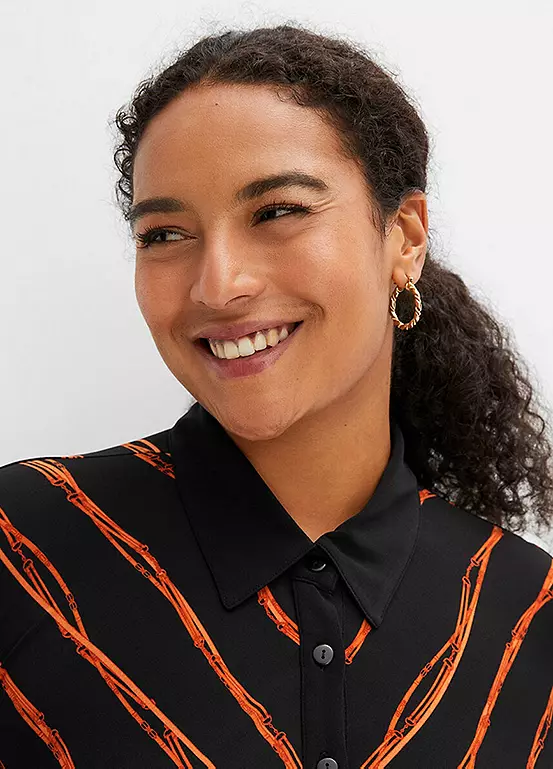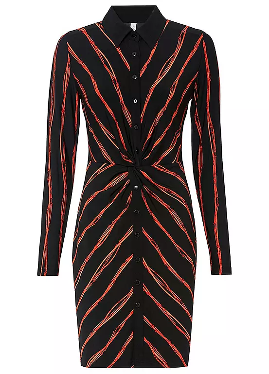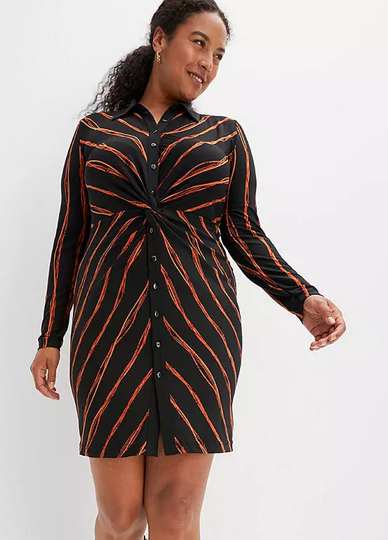 Fitted dress with button fastening and a striped pattern. Length approx. 98 cm.