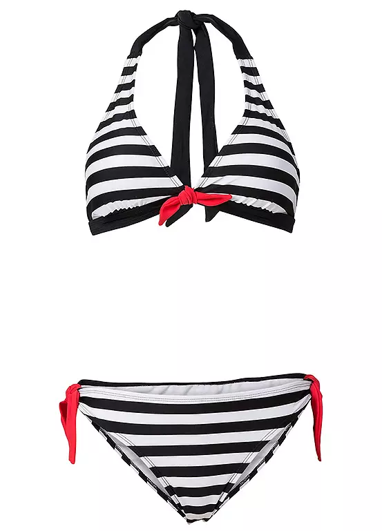This striped bikini top has padded cups and tie straps at the neck and back. The matching bottoms have side ties. Lined. 80% Polyamide, 20% Elastane, Lining: 100% Polyester.