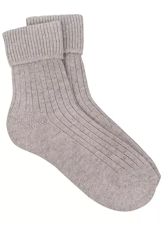 Totes ladies cashmere blend socks, luxurious cashmere and wool blend ankle socks in gorgeous mink or oatmeal shades are a little treat for feet any day of the week! Soft and warm, match to your winter cosies on a chilly indoor day. One size fits, UK Sizes 4-8. Luxury cashmere & wool blend. Soft & warm ribbed texture. Beautifully packaged for the perfect gift. Hand wash only, Do not machine wash, bleach, iron, dry clean or tumble dry. 40% Viscose, 20% Wool, 33% Polyamide, 5% Cashmere, 2% Elastane.