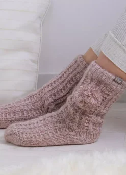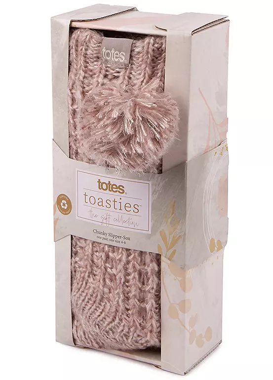 Totes ladies luxury sparkle slipper-socks. Luxury abounds in these cosy, warm totes® toasties® slipper-socks with sherpa lining and a dash of festive sparkle! In a soft pink knit with slip-resistant tread. Team them with your favourite winter cosies for relaxing indoor days this winter. One size fits, UK Sizes 4-8. Sparkly knit design. Warm & cosy sherpa lining. Slip-resistant tread. Contains recycled fabric. Beautifully packaged for the perfect gift. Machine washable at 30°C, Wash with similar colours, Wash dark colours separately.