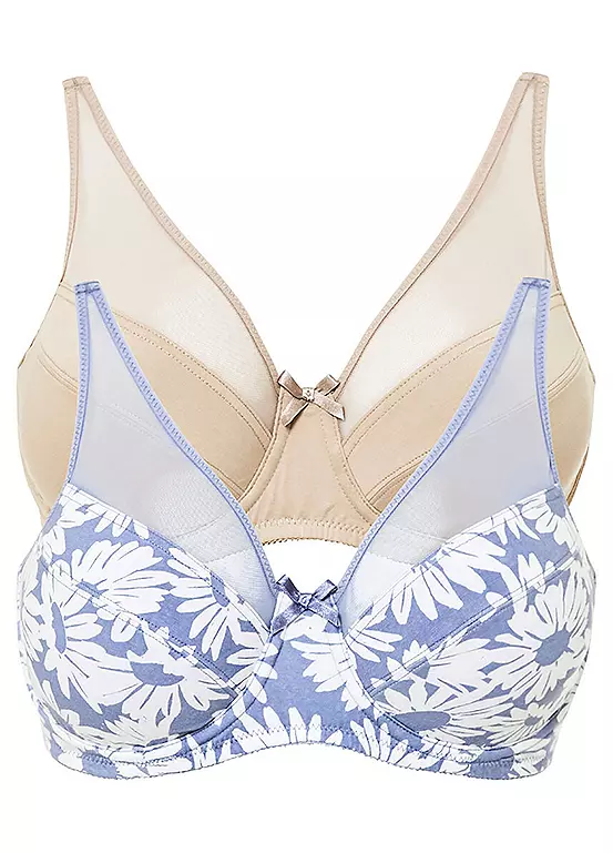 2 underwired cotton bras designed to visually reduce a fuller bust. Hand wash.