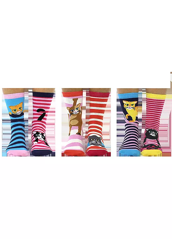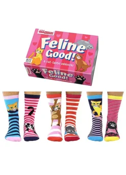United Oddsocks Ladies Pack Of 6 Feline Good Cat-Tastic Odd Socks