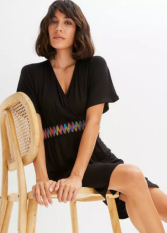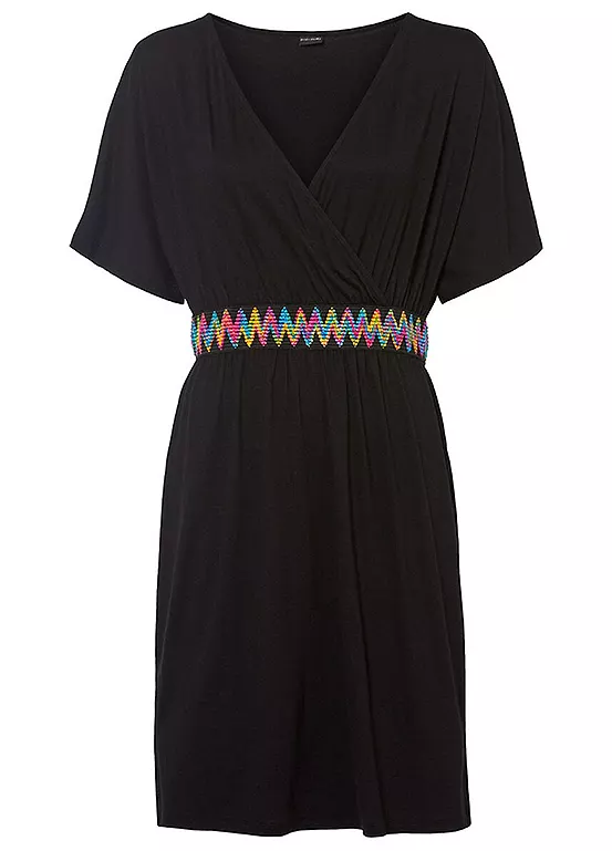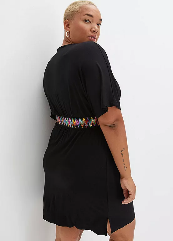A summery jersey dress with decorative tape at the waist. Length approx. 94 cm.