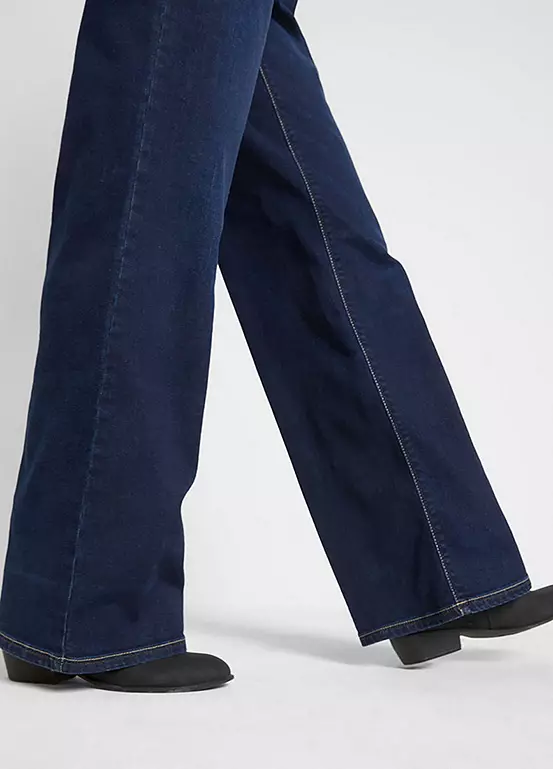 A pair of 5 pockets jeans with extra wide legs and a comfortable waistband. Machine washable. 95% Cotton, 4% Polyester, 1% Elastane.