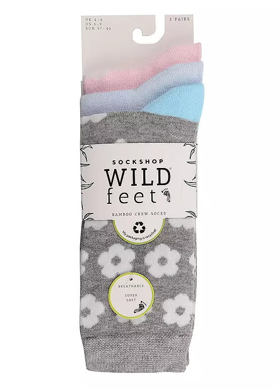Wild Feet socks are made from super-rich bamboo fibres which ensure your feet stay cool, dry and cosy, whilst also looking cool and colourful! This pack features a lovely floral print design and stylish pastel colour socks. Sizes 4 to 7. Pack of 3.